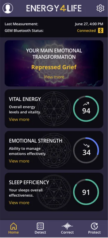 The GEM uses advanced biometric sensors and proprietary algorithms to provide highly accurate readings of your vital and emotional energy. For best results, ensure the device is properly positioned on your wrist and maintains contact to your skin. The more consistently you wear your GEM, the more accurate its personalized insights will become over time.